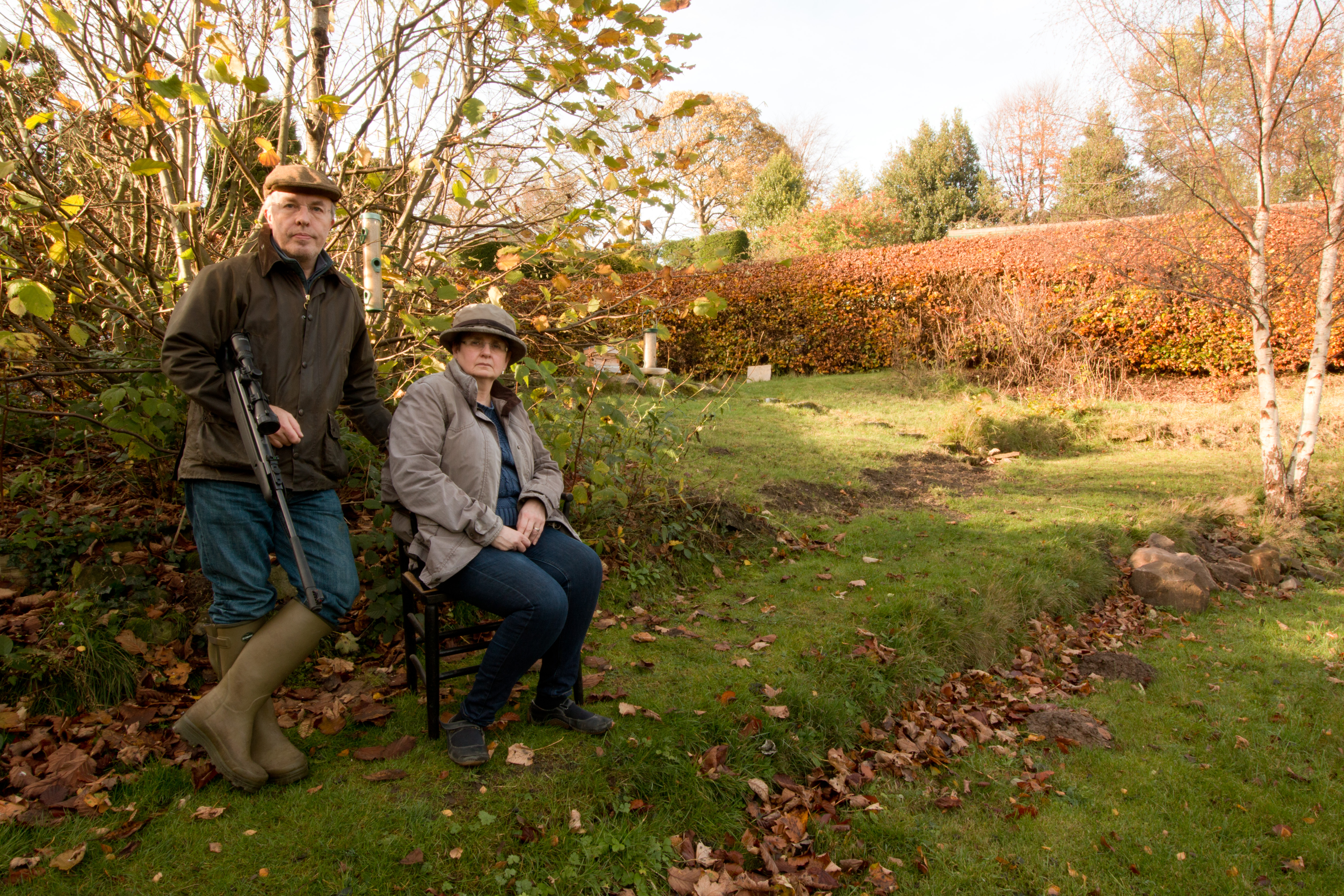 What is in it? Landowners, their dog, a gun, a fence with indications of security, an unmistakable sign, a surveillance camera.