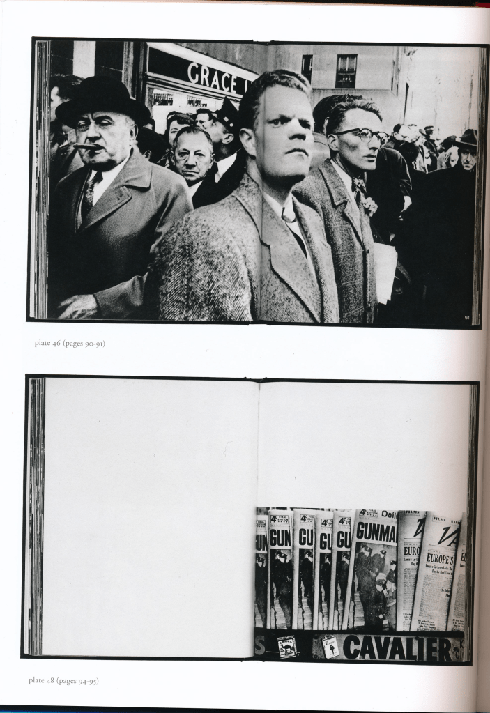 Klein himself, as reported by Jeffrey Ladd in his accompanying article on the making of the book, had said from the outset that “he wanted to photograph New York in a “new way””. Not just the people, not just the physical nature and appearance of the city, but something much more. In a way the book becomes a pictorial analog of the physical experience of the city and being within its environment.