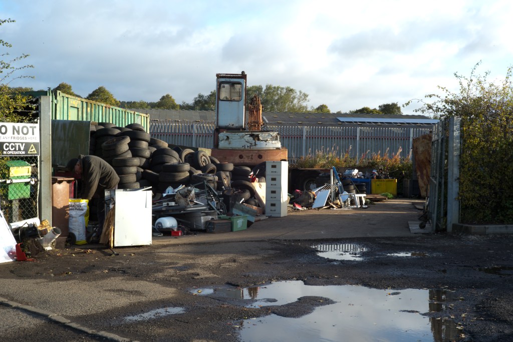 Here is a first go at a potential plan B, the local scrap yard. Normally I see this place on a Saturday morning when there is no-one about but as this was taken on a weekday the old fellow who evidently runs the place, rummaging there on the left was there. As a precaution, and matter of courtesy I asked if he minded if I took some pictures. Clearly from the somewhat bemused look on his face – I did not explain my intention as he did not show any inclination to engage in conversation – he must have wondered why on earth I wanted to do so, but nevertheless acquiesced.