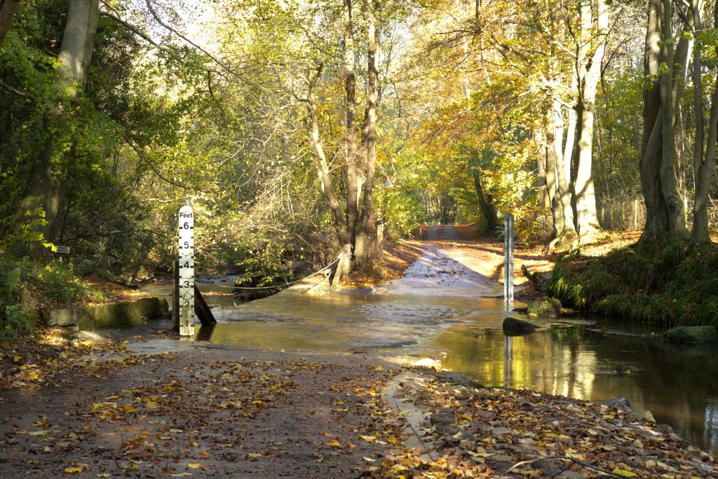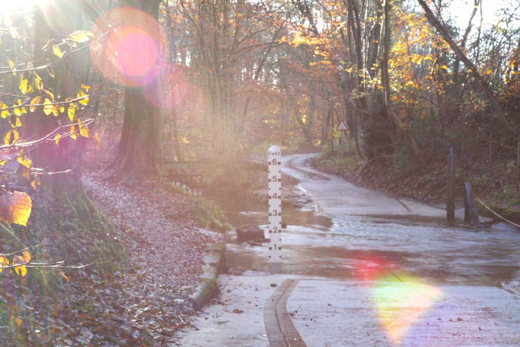 This view of the ford looks west so by early afternoon the sun is already quite low and it is almost a case of shooting contre jour, creating some interesting lens flare for variety.