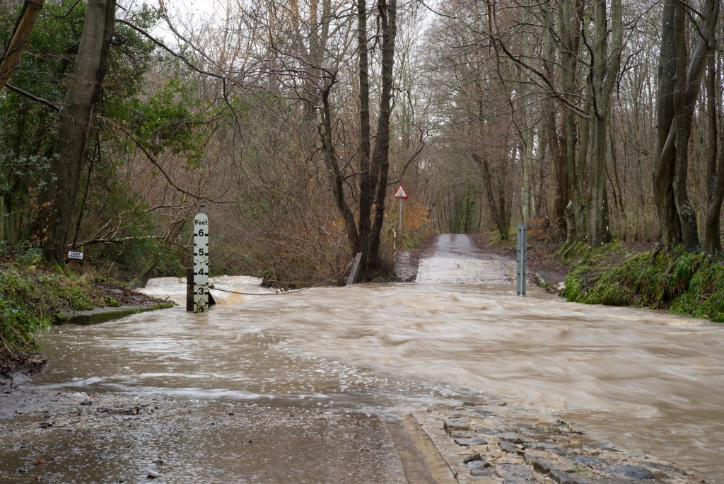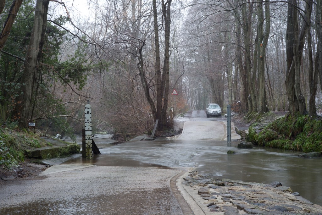 As an aside, these recent conditions have been by no means particularly bad for this ford. During winter it is not uncommon for the depth to exceed three feet, as for example it did last March after a heavy snowfall melted, enough to put my vantage point at risk. There have been occasions when it has been even deeper!